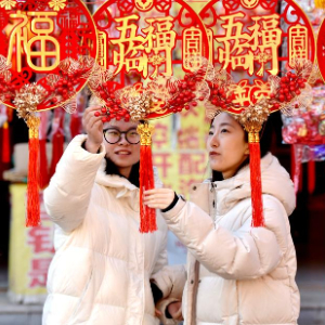 1月27日,市民在河北省邢台市南和区年货大集选购春节饰品。新华社记者 王晓 摄