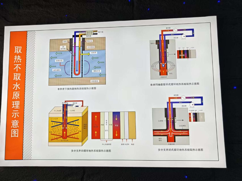 赵季初用了一个形象的比喻:“可以想象成给地球深处安装了一根巨大的‘吸热导管’。我们在钻孔中植入封闭的换热器,管内有专用工质液体。它们在井下吸收岩土中的热量后,通过循环系统被带到地面,经热泵机组‘加压提温’后,即可送入供暖管网。释放完热量的工质液体再返回地下继续吸热,整个过程形成一个与地下水完全物理隔离的闭环,不抽取一滴地下水,实现了零取水、零排放。”