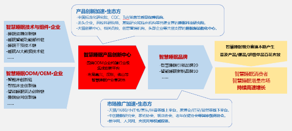 谈到“智慧睡眠生态链”的运行逻辑,蔡畅表示,这些链要慢慢集聚形成一些智慧睡眠产品创新中心,是围绕odm企业构建的行业级集成创新平台,在长三角、珠三角等智慧睡眠产业集聚地落地布局。然后生态加速方参与进来,推动新品、优品频出。